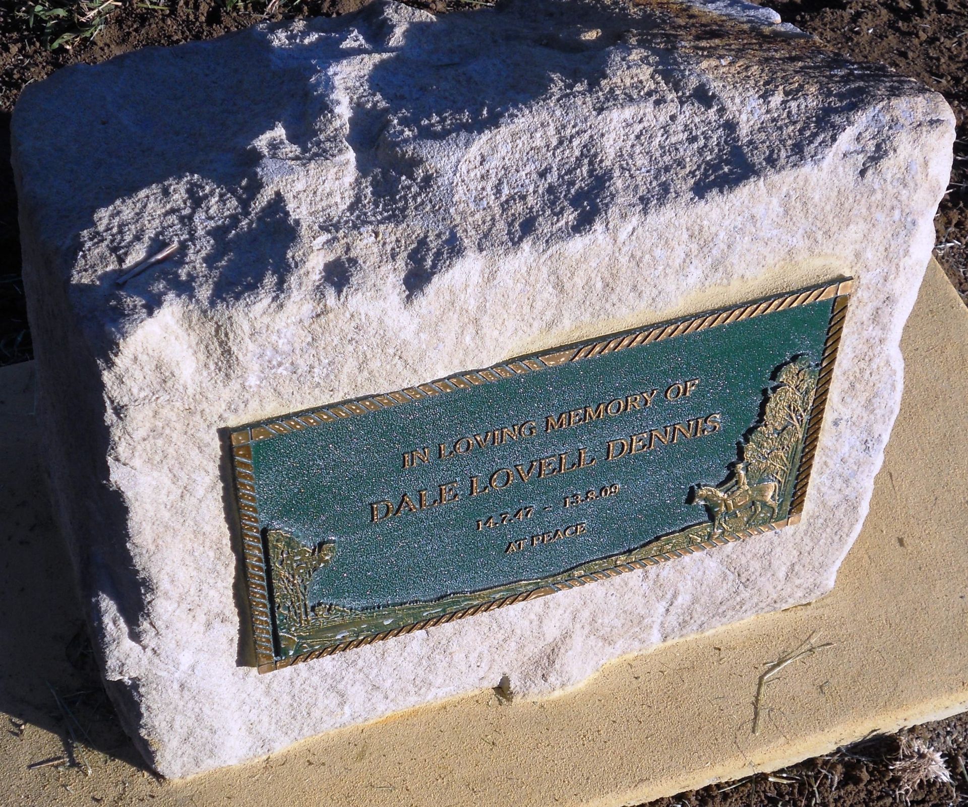 Small black granite plate , on a rock edge base and gold inscription