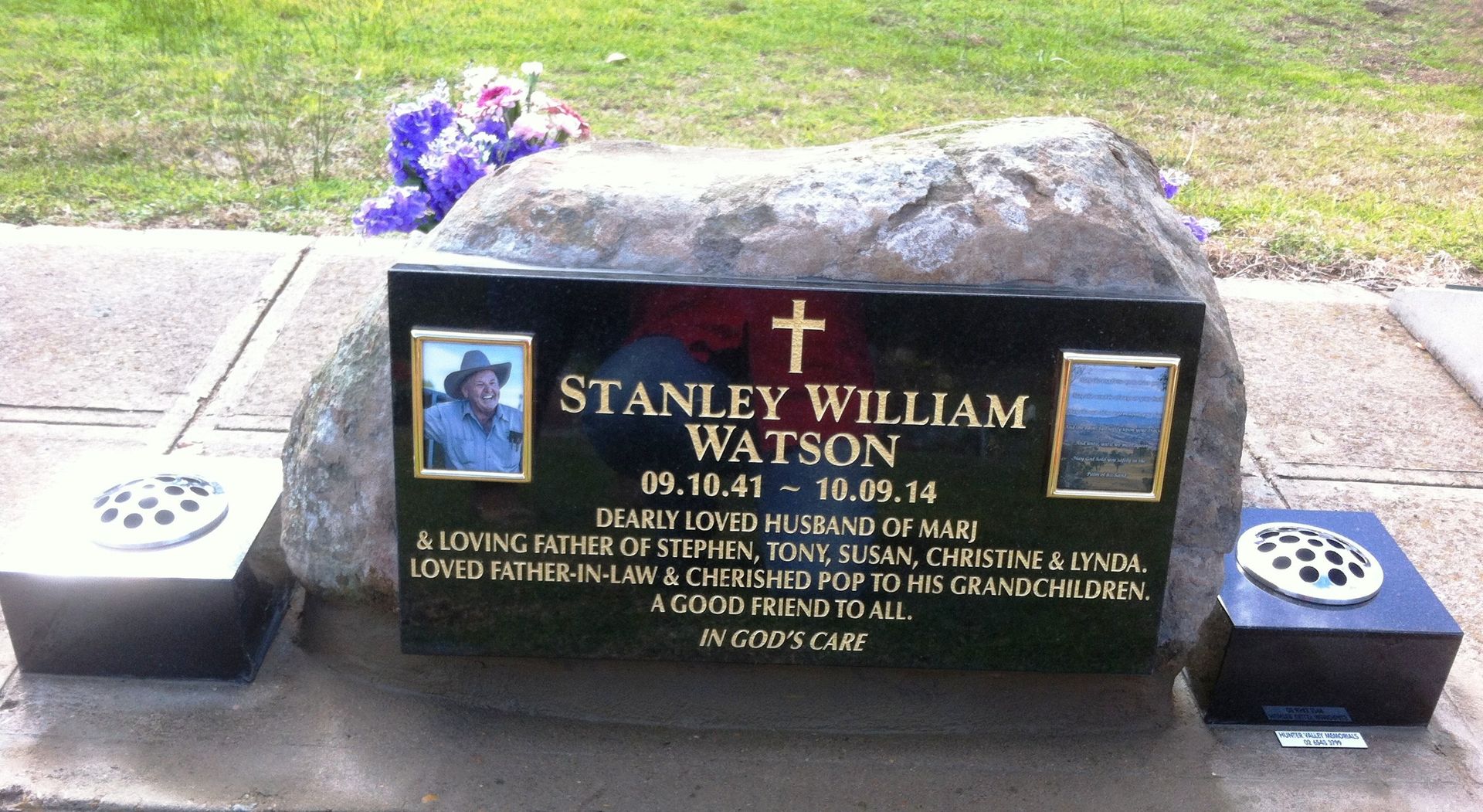 Want to get a better idea of the products we sell? Please browse our photo gallery to get a look at what we offer. Remember that we can customise your inscription in white, silver or 23-carat gold leaf, or it can be left in its natural state.